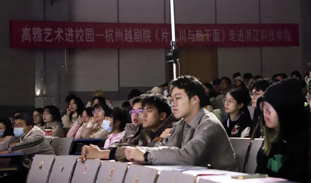 11月21日,“高雅艺术进校园”杭州越剧院现代越剧《片儿川与热干面》专场在我校上演,五百余名师生跟随杭州越剧院演员一起致敬疫情中的最美逆行者,感悟伟大抗疫精神。